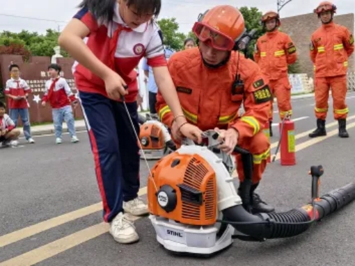 “大家所看見的,是我們森林消防隊員在森林滅火作戰(zhàn)中經(jīng)常會用到的作戰(zhàn)裝備,它叫風(fēng)力滅火機(jī),可達(dá)到每秒90m/s的最大風(fēng)速……”裝備展示環(huán)節(jié)中,隊員們通過面對面講解、點對點答疑和手把手教學(xué)的形式對森林滅火主戰(zhàn)裝備進(jìn)行詳細(xì)講解,現(xiàn)場邀請師生“零距離”感受森林滅火主戰(zhàn)裝備。