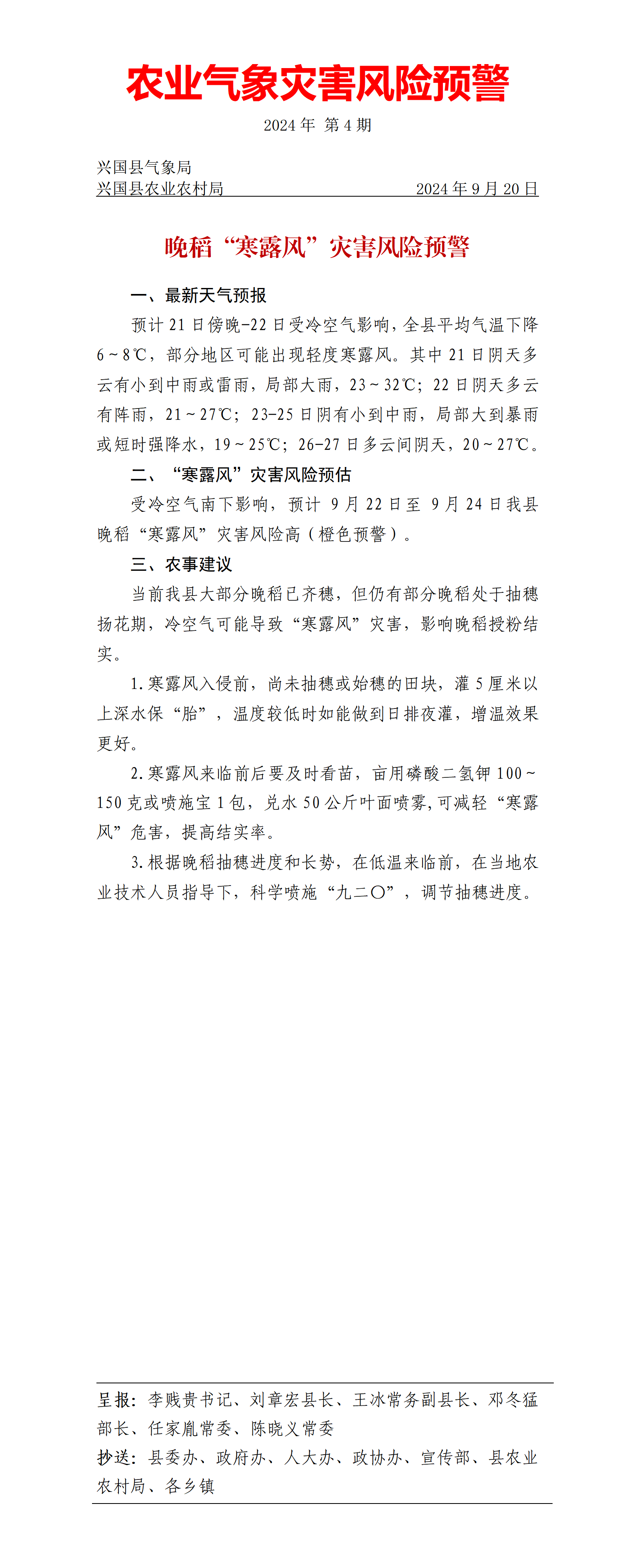 晚稻“寒露風(fēng)”災(zāi)害風(fēng)險預(yù)警