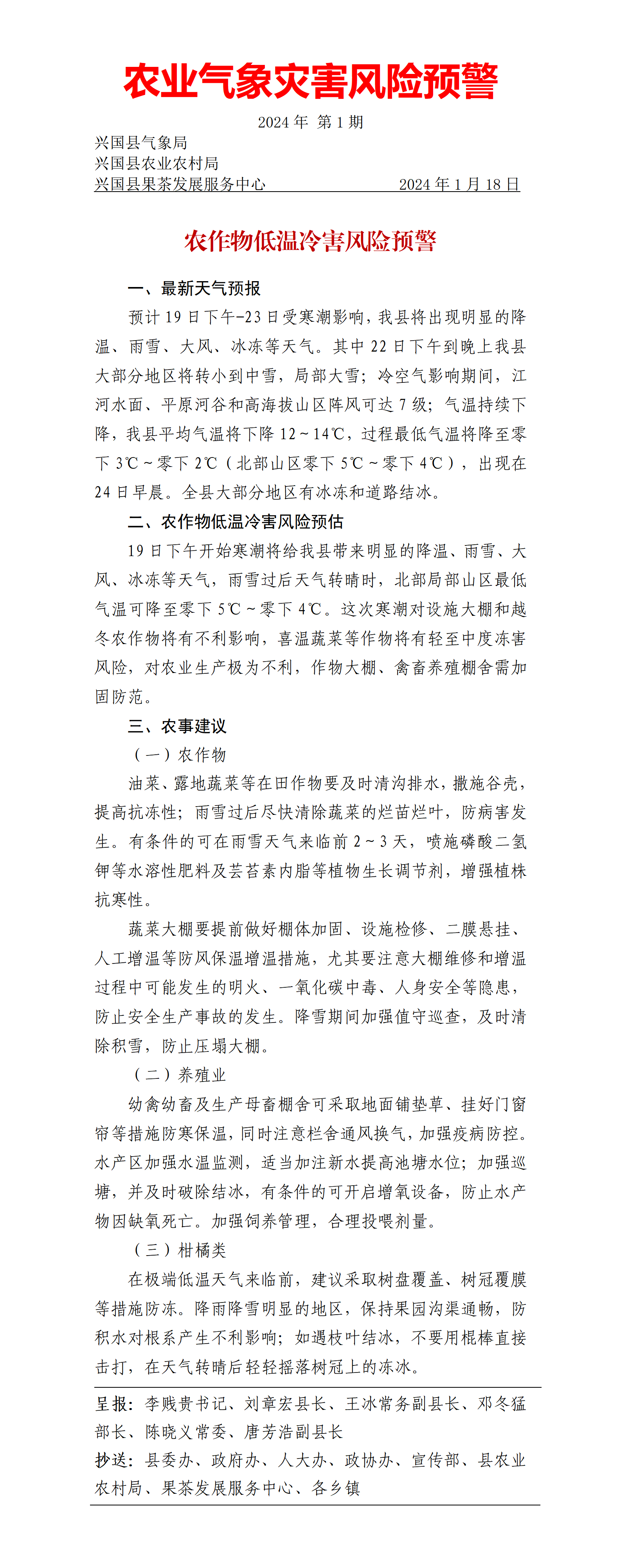 農作物低溫冷害風險預警