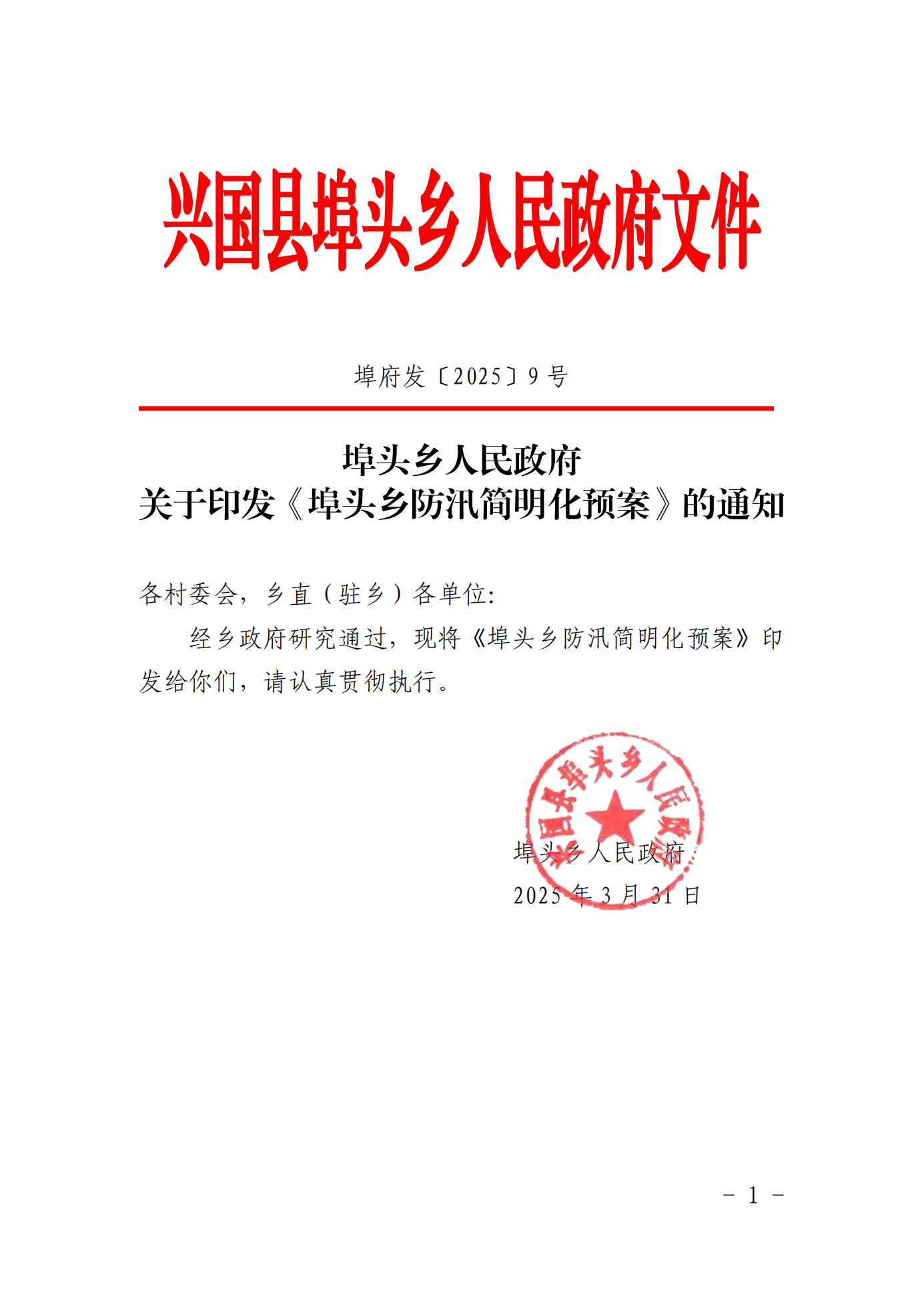 埠府發〔2025〕9號關于印發《埠頭鄉防汛簡明化預案》的通知