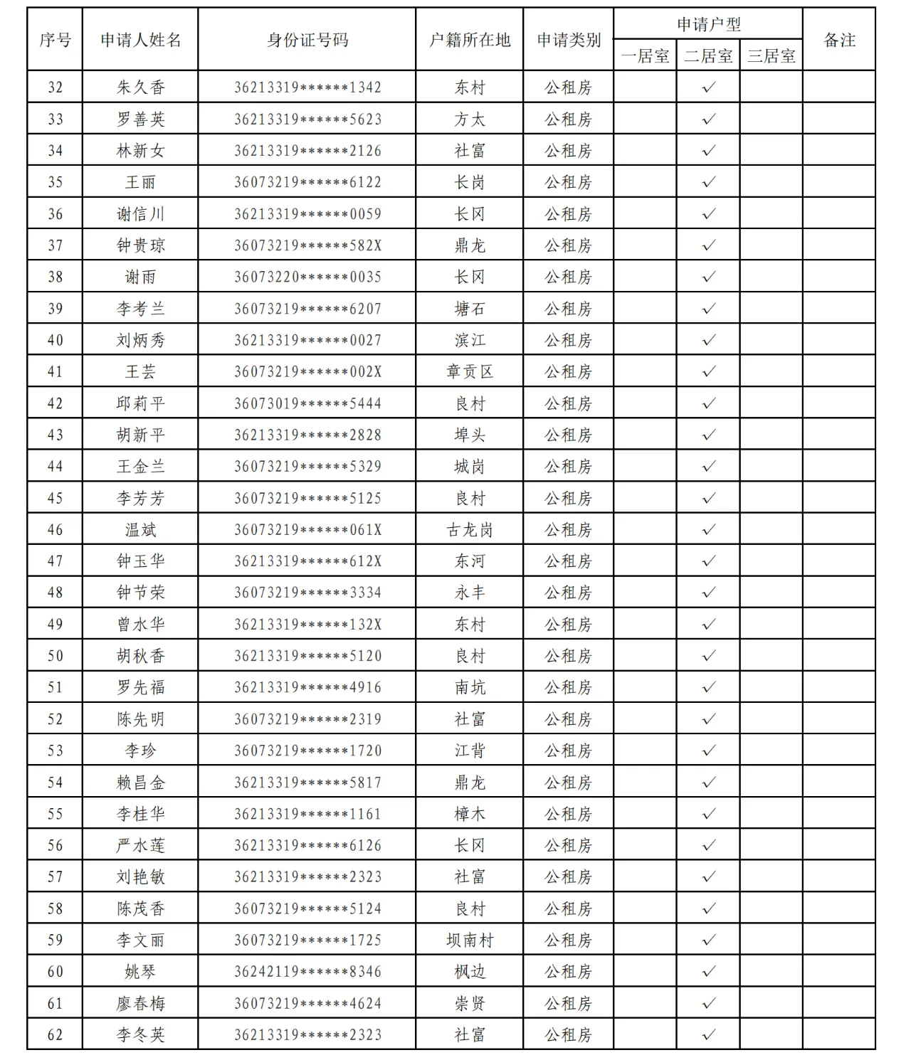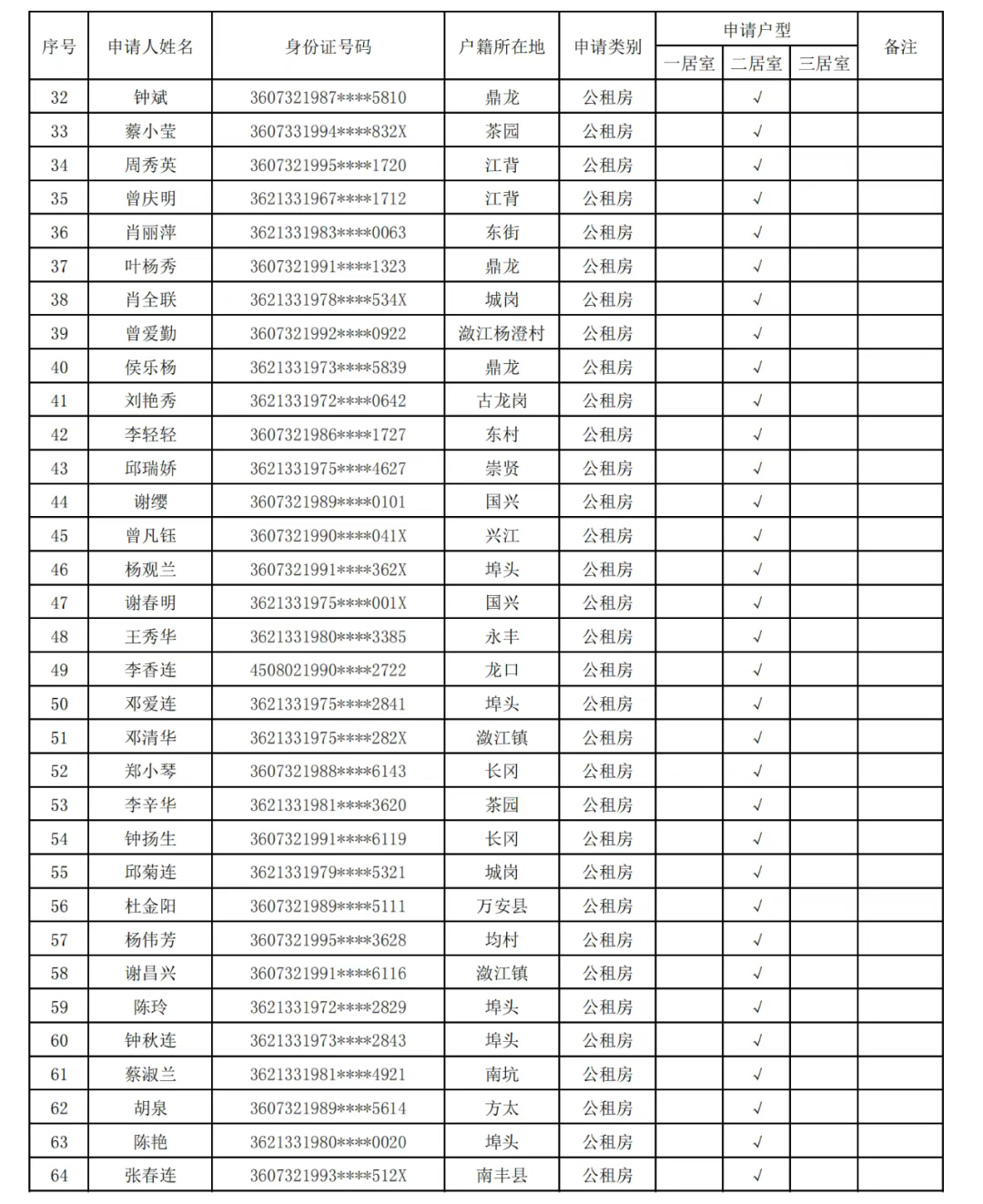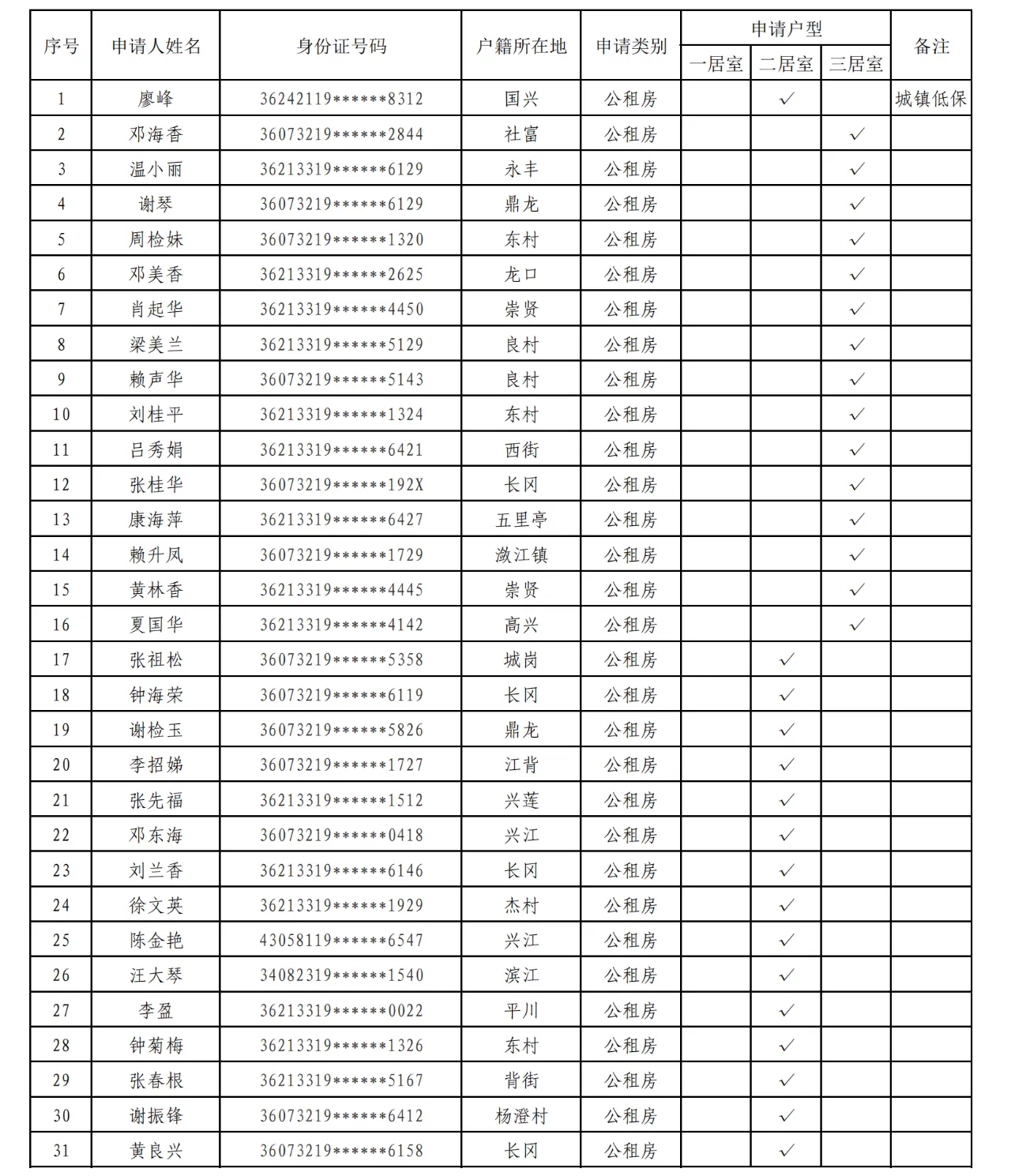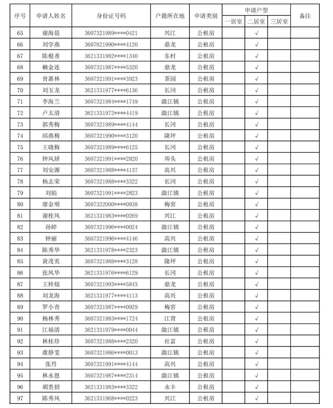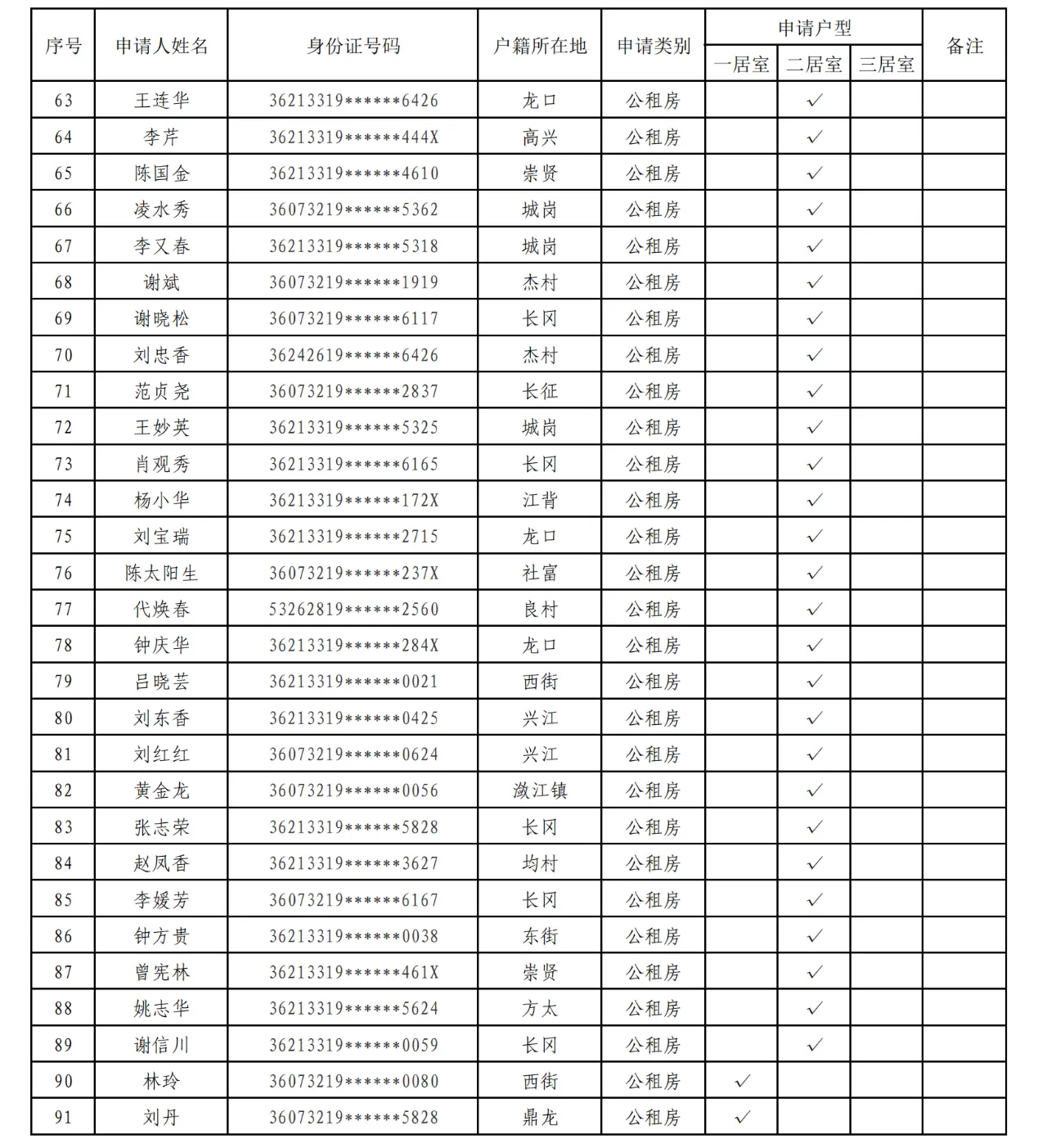 為確保本期公共租賃住房、人才住房實(shí)物分配公開(kāi)、公平、公正,接受社會(huì)及群眾監(jiān)督,現(xiàn)將截止至2024年3月13日18:00提交申請(qǐng)的125戶(hù)公共租賃住房申租家庭、73戶(hù)人才住房申租家庭和91戶(hù)公共租賃住房輪候家庭進(jìn)行公示: