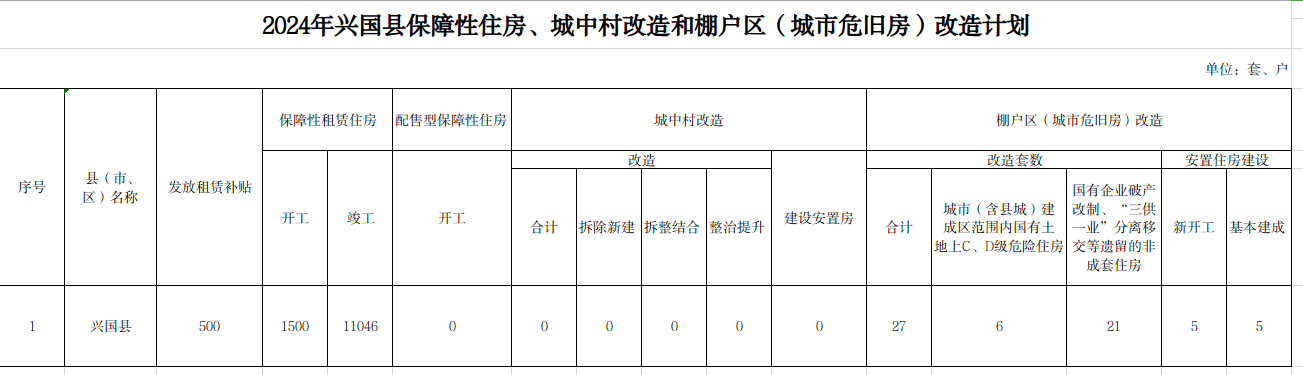 2024年興國縣保障性住房、城中村改造和棚戶區(qū)(城市危舊房)改造計劃
