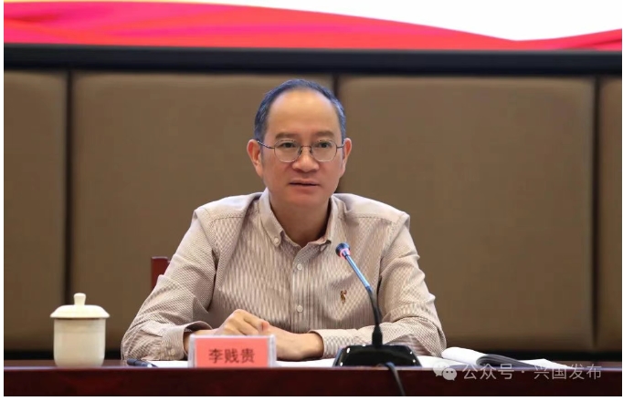李賤貴要求,要鼓足干勁收好官。一定要知不足、明差距,以更大力度咬定目標(biāo)、加壓奮進(jìn),一以貫之做到責(zé)任上心、工作用心、履責(zé)盡心,高標(biāo)準(zhǔn)完成“十四五”規(guī)劃收尾。在“十五五”規(guī)劃中確保做到總結(jié)評估到位、調(diào)研論證到位、征求意見到位、遠(yuǎn)近銜接到位、專業(yè)部門到位,把智慧力量轉(zhuǎn)變?yōu)橥苿?dòng)興國再上新臺階的發(fā)展成效。要站高謀遠(yuǎn)布好局。追求“高線”、守牢“標(biāo)線”,準(zhǔn)確把握興國發(fā)展目標(biāo)定位,提出實(shí)實(shí)在在、務(wù)實(shí)管用的思路舉措,制定“跳一跳、拼一拼、闖一闖”的發(fā)展目標(biāo)任務(wù),做到“遠(yuǎn)近結(jié)合、實(shí)際結(jié)合、主觀能動(dòng)性結(jié)合”,既鼓舞人心、又切實(shí)可行。吃透“上情”、接通“地氣”,密切關(guān)注上級規(guī)劃編制進(jìn)展,吃透政策、把準(zhǔn)投向,力爭更多項(xiàng)目、事項(xiàng)、任務(wù)納入國家、省、市“十五五”規(guī)劃大盤子;充分利用各類途徑與渠道,廣問策、集眾智,確保規(guī)劃全面、協(xié)調(diào)。立足“現(xiàn)在”、把握“將來”,加強(qiáng)整體規(guī)劃,把眼光放長、眼界放高,認(rèn)真分析面臨形勢和矛盾問題,搶占發(fā)展先機(jī),切實(shí)做好戰(zhàn)略謀劃。要轉(zhuǎn)變作風(fēng)問好效。一定要對興國發(fā)展、興國未來、興國后代負(fù)責(zé),帶頭轉(zhuǎn)變作風(fēng),把標(biāo)桿立起來、把狀態(tài)提起來、把勁頭鼓起來,做到該擔(dān)的責(zé)堅(jiān)決擔(dān)起、該盡的力必須盡到、該操的心務(wù)必操好,確保按期高質(zhì)量完成各項(xiàng)任務(wù)。