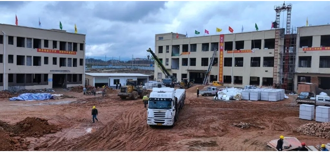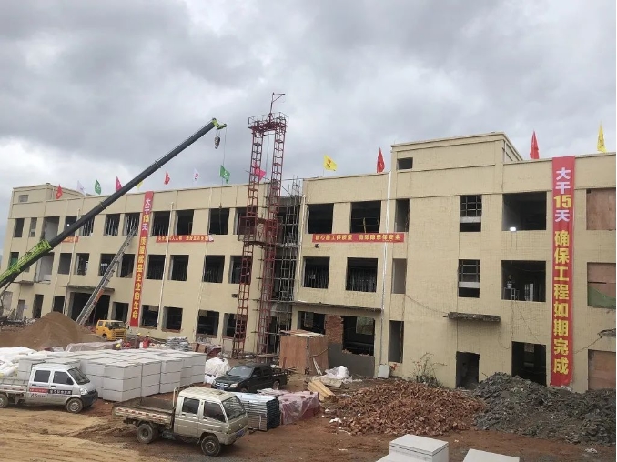 3月23日,記者走進興國縣醫(yī)療應急提升項目現場,工地上塔吊林立,鋼管架密如織網,挖掘機、裝載機以及拉運施工材料的運輸車輛來回穿梭,散布在三棟建筑樓房內的256名施工人員分工明確,機械設備運轉有序,大家正在忙著鋪裝石材地面、粉刷墻面、安裝空調系統,各項工作有條不紊進行中,到處都能看到你追我趕、比拼爭先的繁忙施工景象。