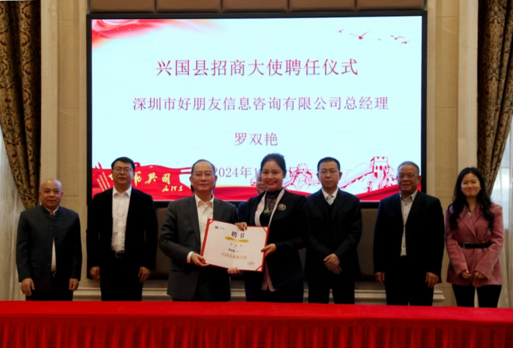 李賤貴在致辭中指出,東莞康智匯電子是我們2024年引進的第一批項目,項目投資規模大、收益評估好,契合我縣新能源新材料產業發展需求,將有效延伸我縣儲能、電源、數字能源設備等產業鏈,進一步壯大我縣新能源產業。深圳市好朋友信息咨詢有限公司,擁有豐厚的人脈優勢、信息優勢。聘請深圳市好朋友信息咨詢有限公司作為招商大使,是我縣招商引資的又一創新之舉,將有效擴大興國招商“朋友圈”、提升項目招引“精準度”。