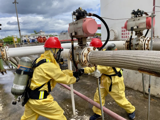 警報聲中,值班人員秒切“戰斗模式”,抓起對講機上報險情。演練同步啟動二級響應,疏散引導組沖向裝卸區,高喊:“油品泄漏!立即撤離!”作業人員在無預設路線的情況下,僅用2分鐘抵達安全集合點,較日常演練縮短40%。“沒腳本反而更專注,本能反應救了我們?!笔枭⒔M組長李如國擦著汗說。