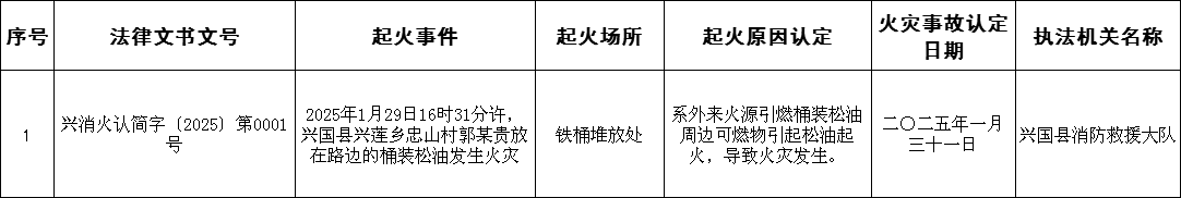 2025年2月份火災事故認定信息公開