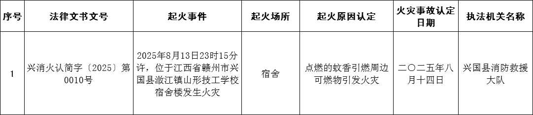 2025年8月份火災事故認定信息公開