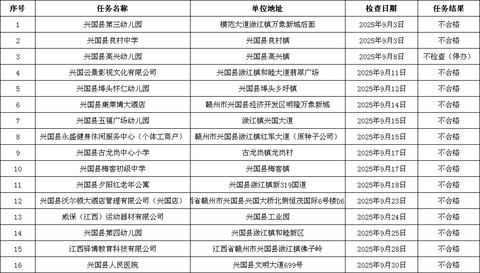 2025年9月份江西省“雙隨機、一公開”消防監管信息系統抽中單位檢查結果公示