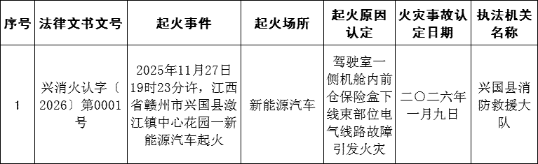 2026年1月份火災(zāi)事故認(rèn)定信息公開
