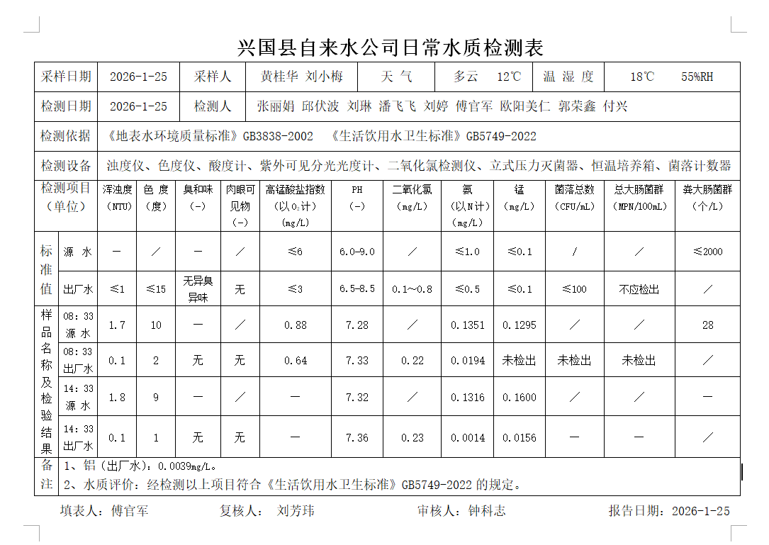 水質(zhì)常規(guī)檢測臺(tái)賬(2026年1月25日)
