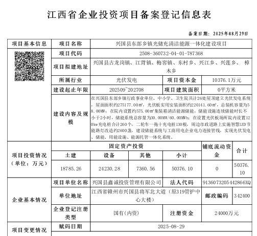 興行審投資字〔2025〕780號興國縣東部鄉鎮光儲充清潔能源一體化建設項目備案通知書
