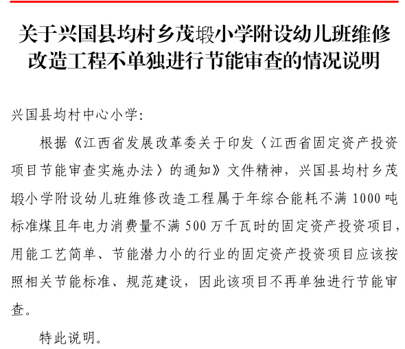 興行審投資字〔2025〕741號興國縣均村鄉茂塅小學附設幼兒班維修改造工程不單獨進行節能審查的情況說明