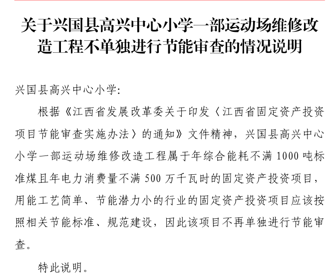 興行審投資字〔2025〕703號興國縣高興中心小學一部運動場維修改造工程不單獨進行節能審查的情況說明