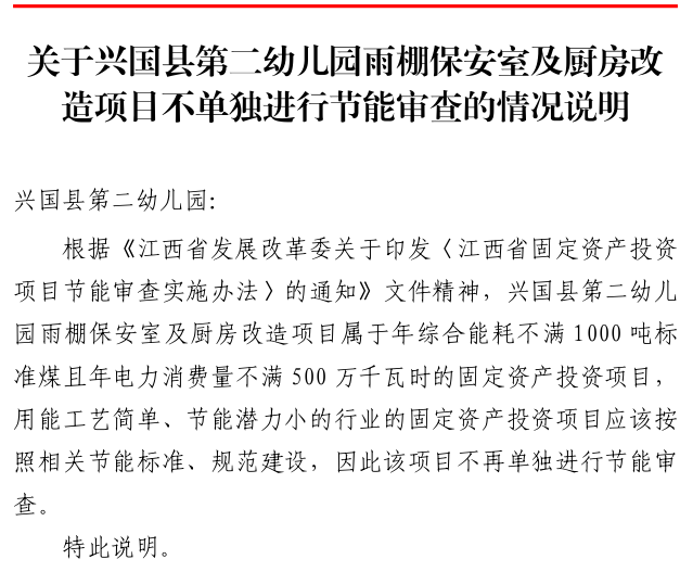 興行審投資字〔2025〕732 號興國縣第二幼兒園雨棚保安室及廚房改造項目不單獨進行節能審查的情況說明的批復