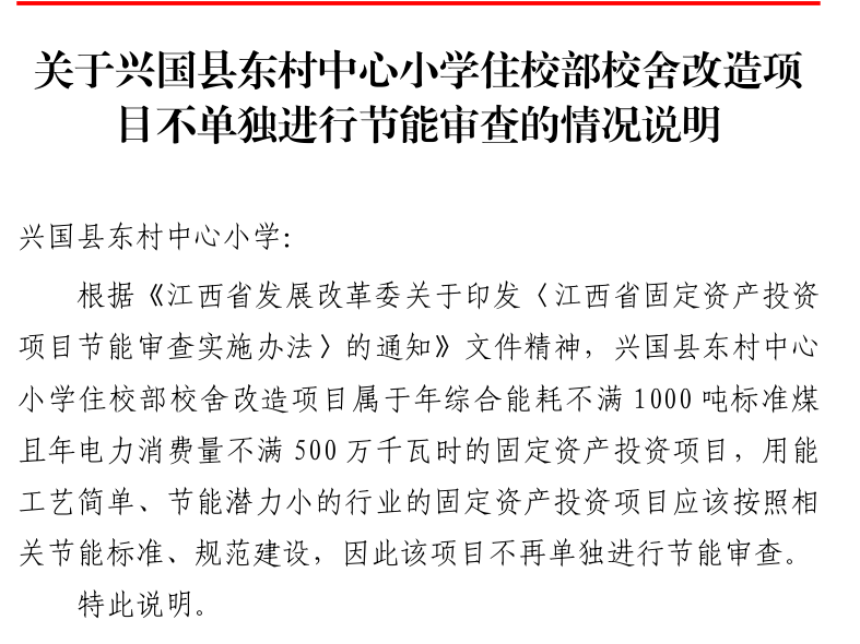 興行審投資字〔2025〕745 號興國縣東村中心小學住校部校舍改造項目不單獨進行節能審查的情況說明的批復