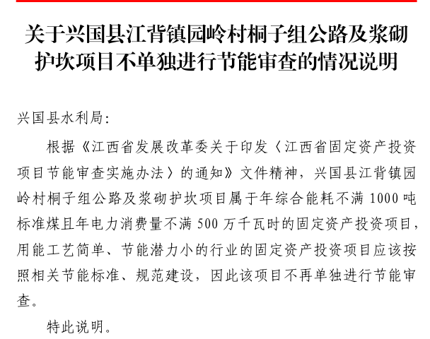 興行審投資字〔2025〕628號興國縣江背鎮園嶺村桐子組公路及漿砌護坎項目不單獨進行節能審查的情況說明的批復