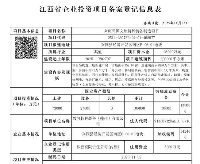 興行審投資字〔2025〕979號興河興國文旅特種裝備制造項目備案通知書