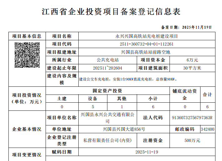 興行審?fù)顿Y字〔2025〕1023永興興國(guó)高鐵站充電樁建設(shè)項(xiàng)目備案通知書