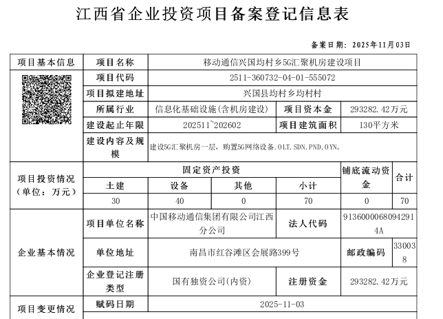 興行審投資字〔2025〕971號移動通信興國均村鄉5G匯聚機房建設項目備案通知書