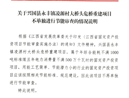 興行審投資字〔2025〕974號關于興國縣永豐鎮凌源村大橋頭危橋重建項目不單獨進行節能審查的情況說明