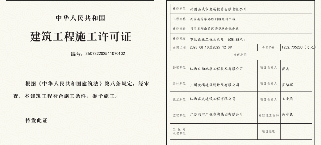 興行審投資字〔2025〕990號興國縣芳華路勝利路延伸工程施工許可證