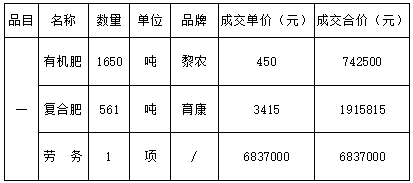 成交供應商名稱:吉安惠和農林有限公司、黎川縣孔斌農藥經營部(聯合體)