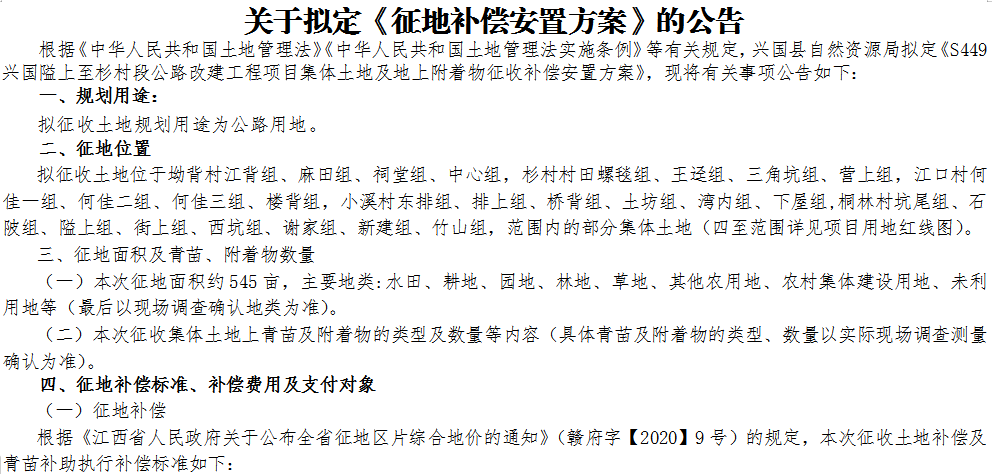 關(guān)于擬定《征地補(bǔ)償安置方案》的公告
