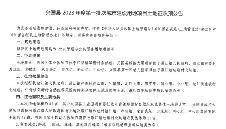 興國縣2023年度第一批次城市建設用地項目土地征收預公告