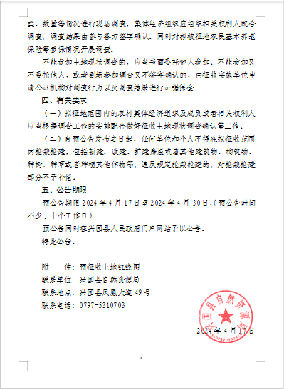 S219興國蕉坑至蓮塘段公路改建一期項目用地征收土地預公告