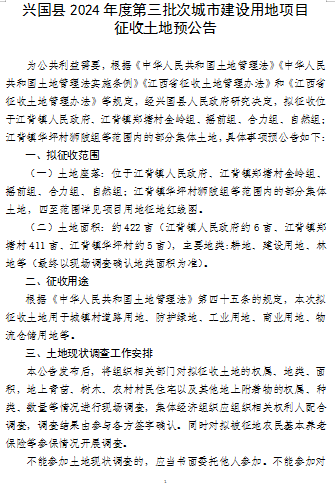 興國縣2024年度第三批次城市建設用地項目征收土地預公告