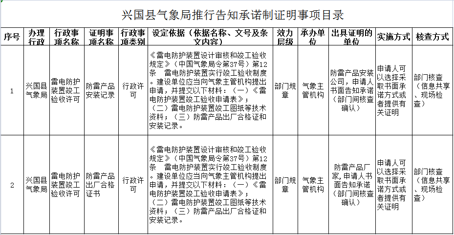附件1:興國(guó)縣氣象局推行告知承諾制證明事項(xiàng)目錄