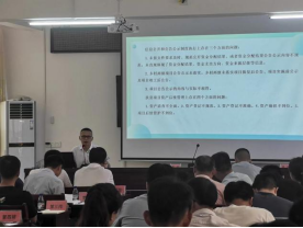 ▲縣鄉(xiāng)村振興局黨組成員曾健就扶貧項(xiàng)目資產(chǎn)后續(xù)管理工作進(jìn)行講解