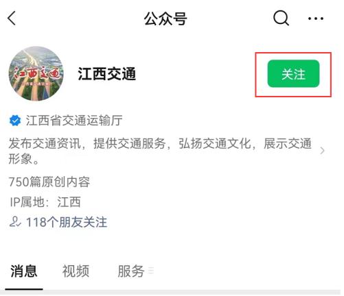 第一步:通過掃描二維碼點擊關注“江西交通”微信公眾號。