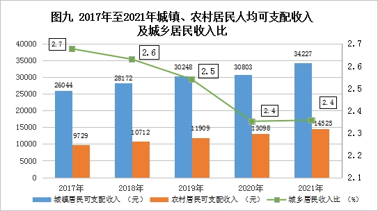 全縣城鎮居民人均可支配收入34227元,比上年增加2403元,增長7.55%;全縣農村居民人均可支配收入14525元,比上年增加1476元,增長11.31%;城鄉居民收入比2.36:1。
