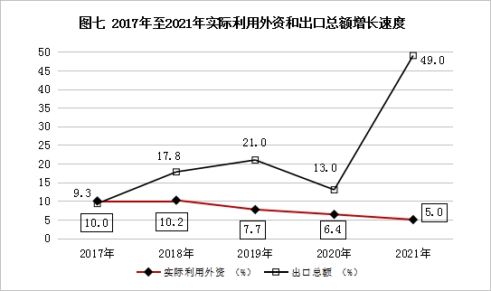 全縣實際外商投資12545萬美元、同比增長5.01%;現匯進資102萬美元、下降64.46%;利用省外2000萬以上實際入統項目17個,其中首位產業項目12個,億元以上項目10個。利用省外2000萬以上資金40.33億元、同比增長9.3%;外貿進出口60001.61萬元,其中出口57001.42萬元、同比增長49.15%;其中自營出口41818.65萬元、占比73%,非自營出口15182.76萬元、占比26%。
