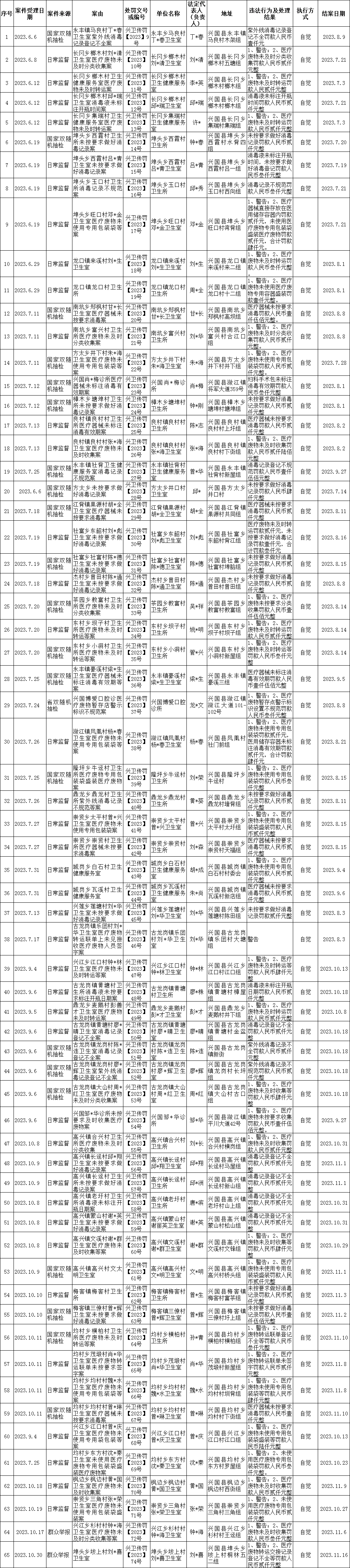 興國縣2023年下半年傳染病防治案件查辦情況表