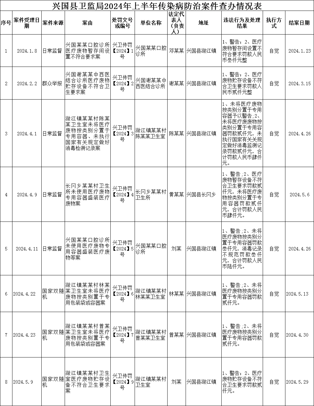 興國縣衛監局2024年上半年傳染病防治案件查辦情況通報