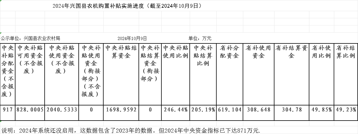 2024年興國縣農(nóng)機(jī)購置補(bǔ)貼實(shí)施進(jìn)度(截至2024年10月9日)