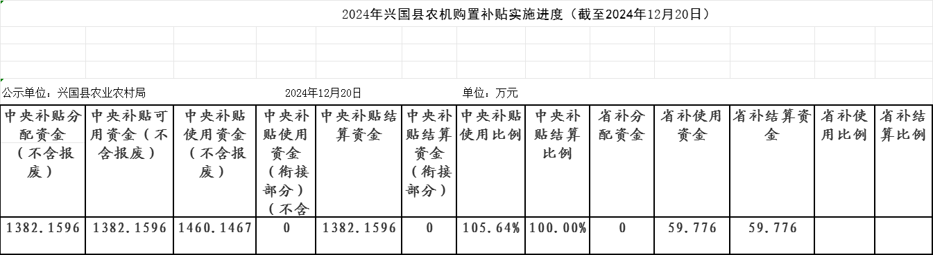 2024年興國縣農機購置補貼實施進度(截至2024年12月20日)