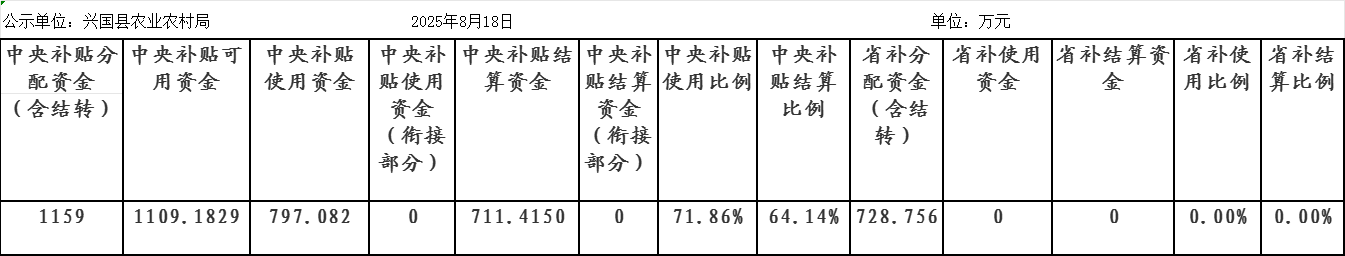 2025年興國縣農機購置補貼實施進度(截至2025年8月18日)