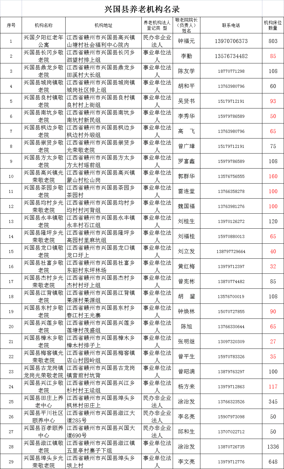 興國(guó)縣養(yǎng)老機(jī)構(gòu)名錄