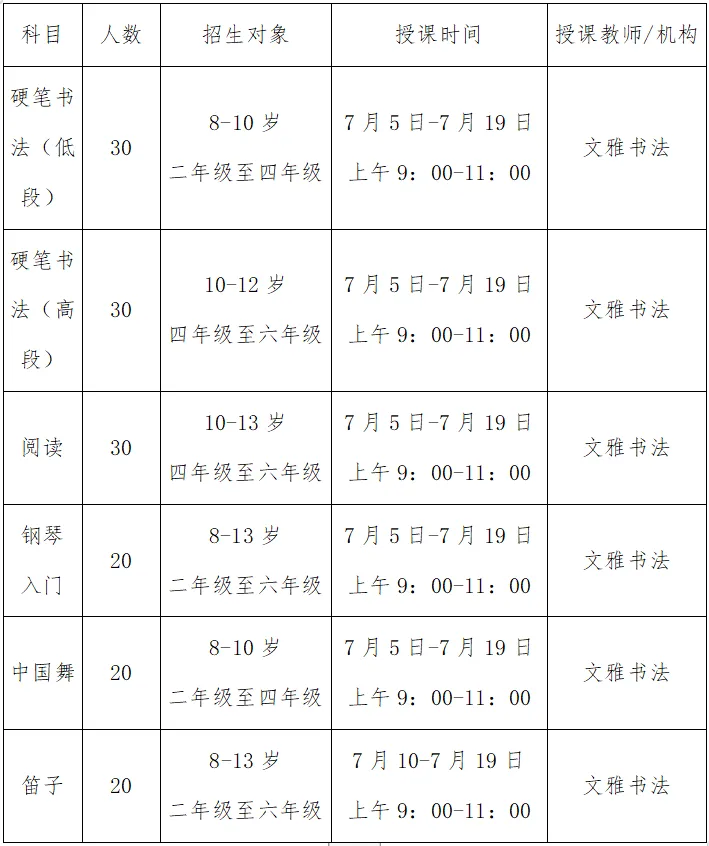 4.如遇特殊情況,我館可能會對培訓時間、師資、場地、器材等進行調整,請各位學員務必愛護培訓班公共財物。