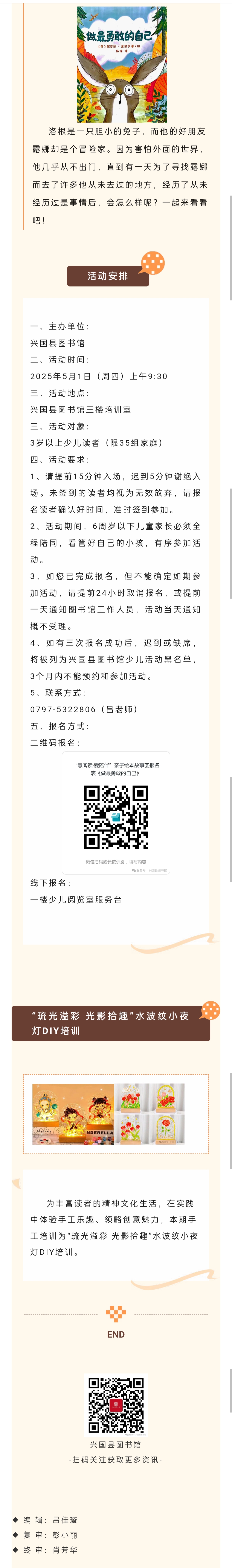 【深化全民閱讀 書香直達基層】活動預告 |“慧閱讀·愛陪伴”親子繪本故事薈《做最勇敢的自己》