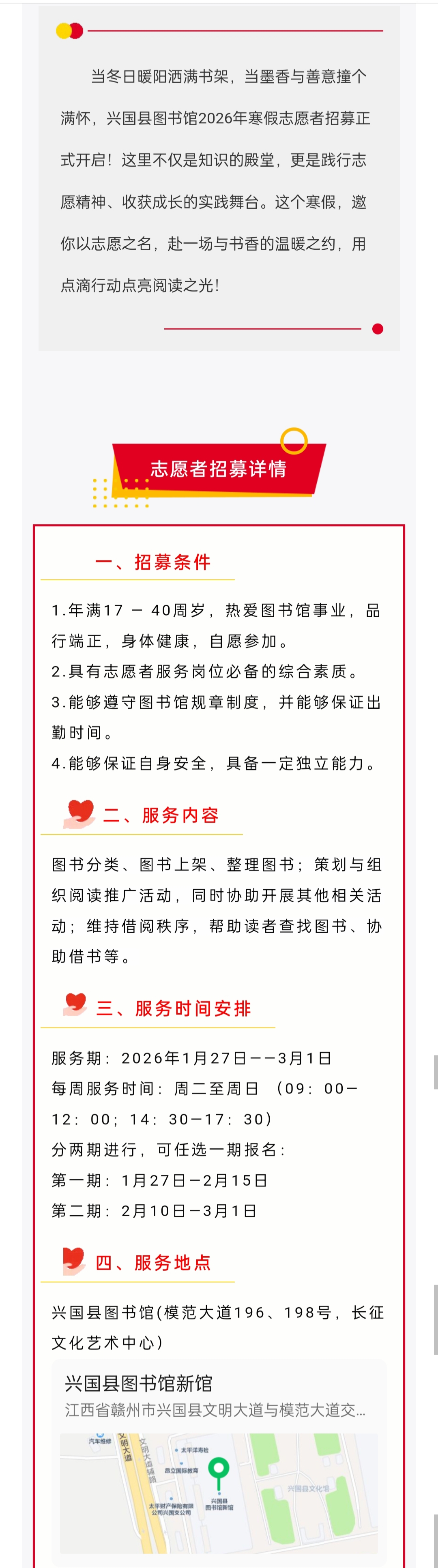 招募公告 | 興國縣圖書館招募2026年寒假志愿者公告2026年1月11日 19:56江西在小說閱讀器中沉浸閱讀