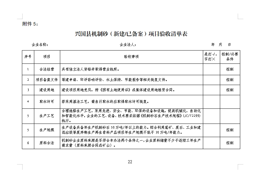 5.興國縣機制砂(新建/已備案)項目驗收清單表