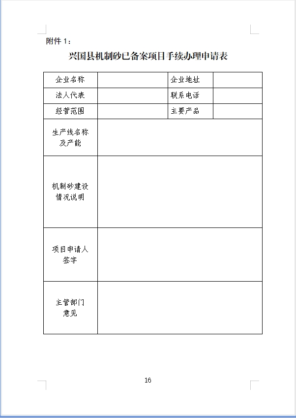 附件:1.興國縣機制砂已備案項目手續辦理申請表