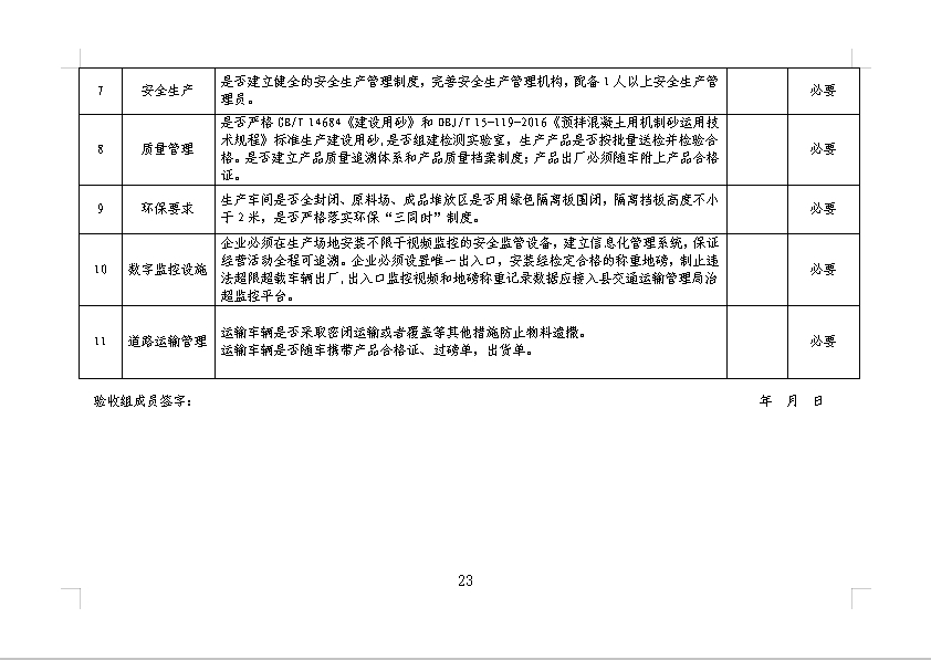 第十二條 環保要求。企業應取得環評批復并開展環保竣工驗收。企業出入口需配備車輛沖洗平臺及沉淀池等廢水處理設施,生產線必須配套收塵裝置,采用噴霧、灑水、全封閉皮帶運輸等措施,破碎加工區、中間料庫、成品庫等區域完成“三封閉”、“三廢”處理達標,生產廠界噪聲應符合《工業企業廠界環境噪聲排放標準》(GB12348)有關規定。