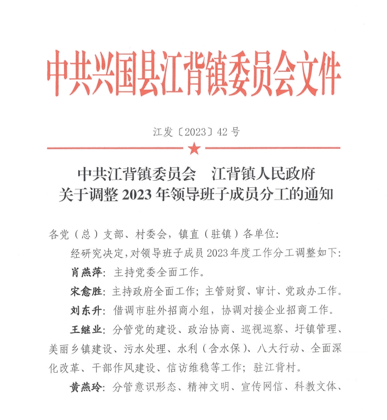 江發42號關于調整2023年領導班子成員分工的通知11.9