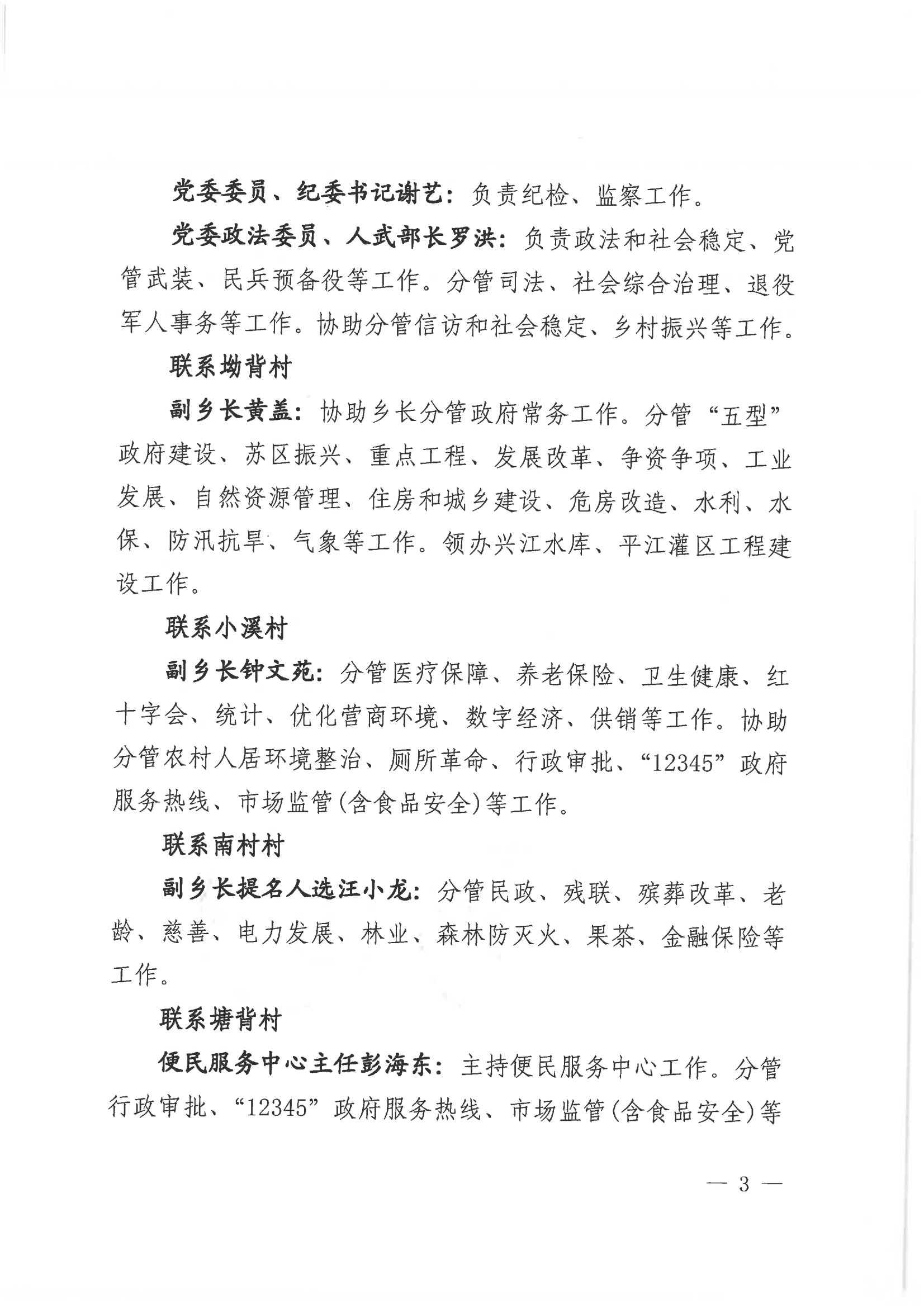 興江鄉關于調整鄉領導班子成員工作分工的通知